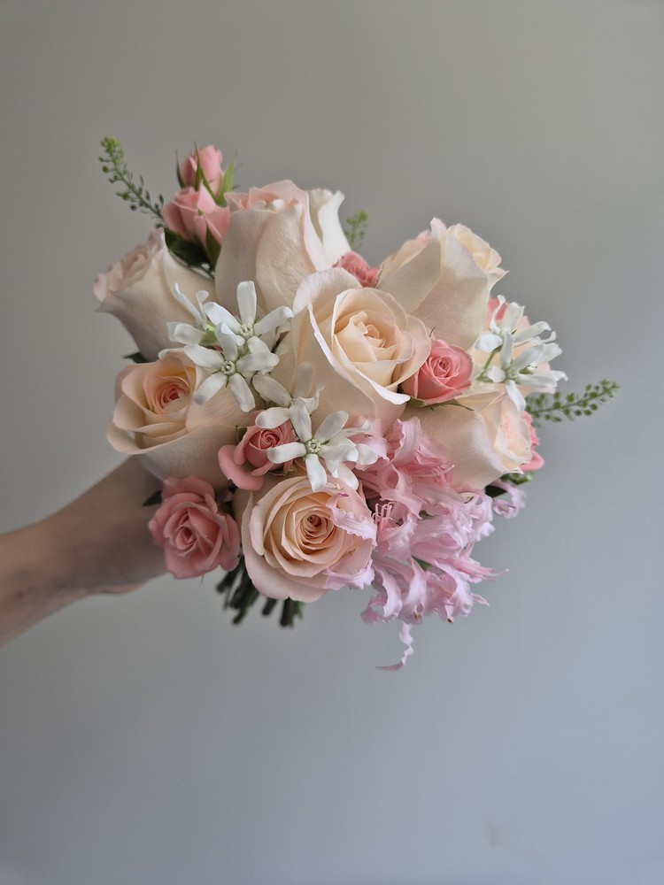 하젤 장미는 시기에 따라 좀 더 핑크빛이 돌기도, 피치빛이 돌기도 하는 장미입니다. 장미의 색감은 시기에 따라 달라질 수 있습니다.